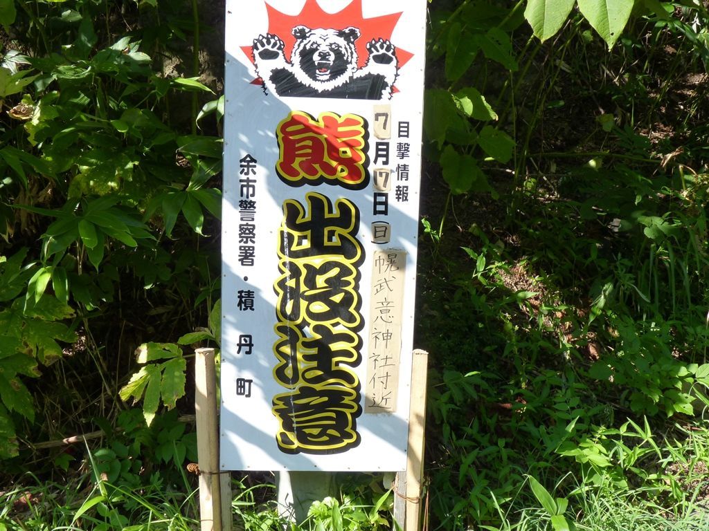 途中、熊出没注意の看板があり、よく見てみると幌武意神社付近とあるじゃないですか!(参拝日は8月12日)