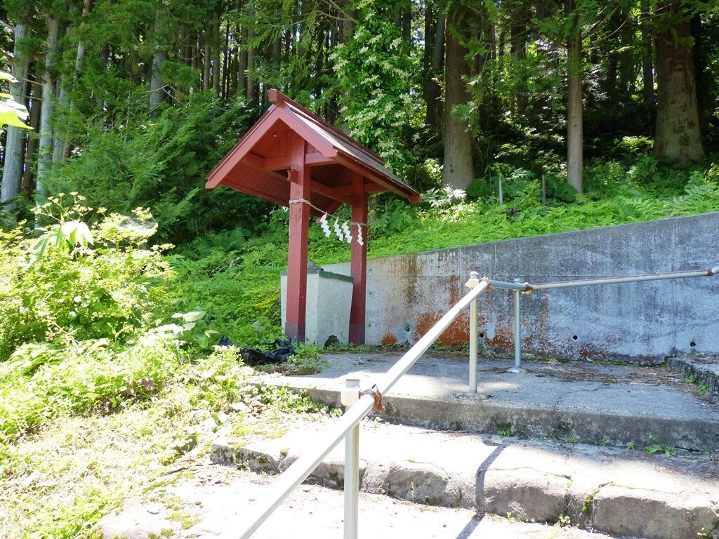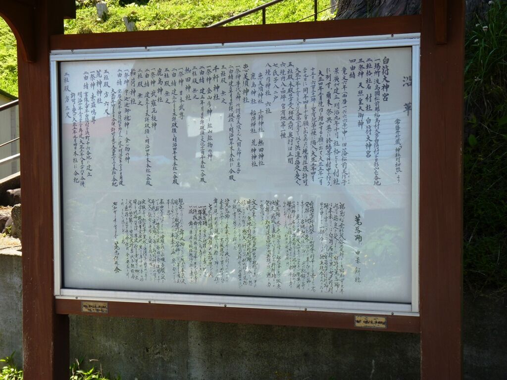 国道228号から白符川右岸側の道に曲がりちょっと行くと神社はあり、昔訪問したときは木々が生い茂り薄暗い参道と社殿でしたが、今回訪問してびっくり!斜面の檜は伐木され光の当たる明るい神社になっています。そして下からあの巨木が目立つ様になっていました。