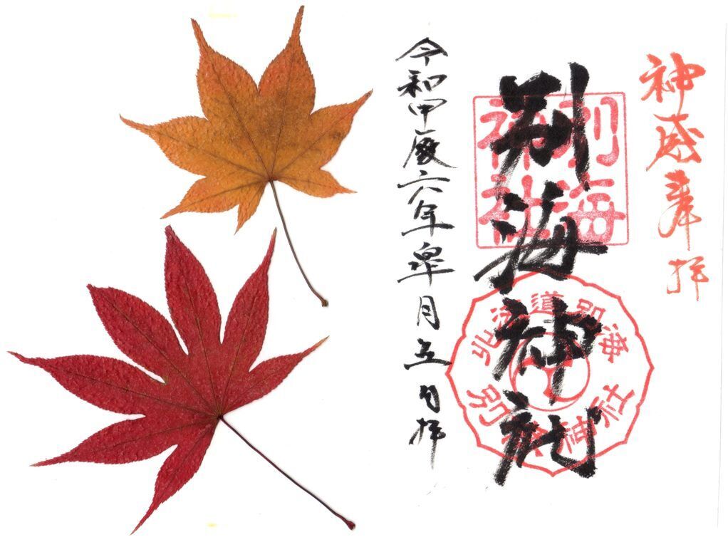 郵送代負担は申し訳ないので、返信用のスマートレターと初穂料を添えて封筒に入れたのを賽銭箱に投函したら、後日、きちんと御朱印と楓の押し葉が送られてきました。