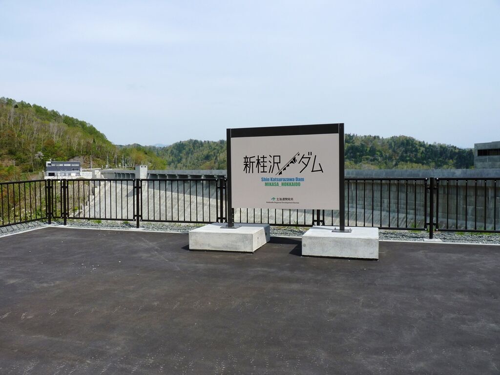 新桂沢ダムは、半世紀以上前(1957年)に造られた桂沢ダムの堤体を嵩上げするダム再開発工事により完成したダムで、治水や三笠市・岩見沢市等への水の供給・水力発電を担ってきました。