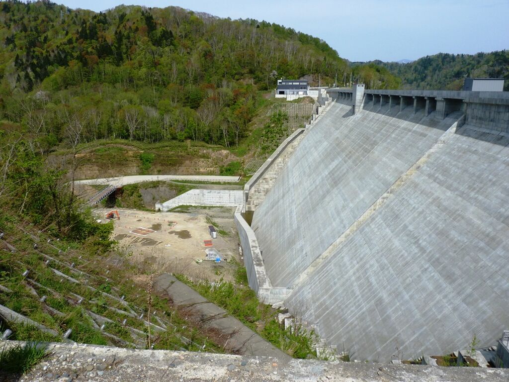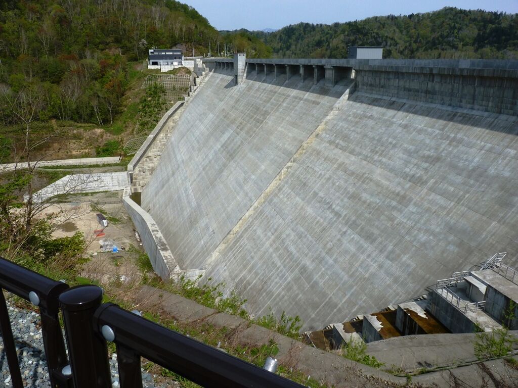 この再開発工事は国土交通省北海道開発局が手掛ける幾春別川総合開発事業の一環であり、堤高63.6mの既設堤体を75.5mへ11.9m嵩上げする工事です。これにより総貯水容量を現在の1.6倍に増加させ、利水・治水機能の向上を図りました。