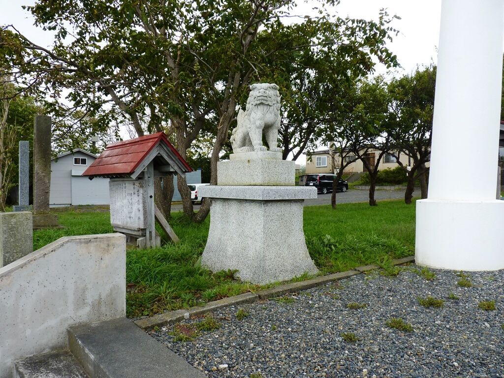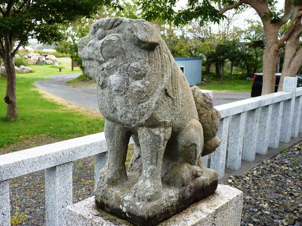 狛犬一対(昭和50年8月吉日建立、奉納 大東亜戦争終結30周年記念 苫前町遺族会)
