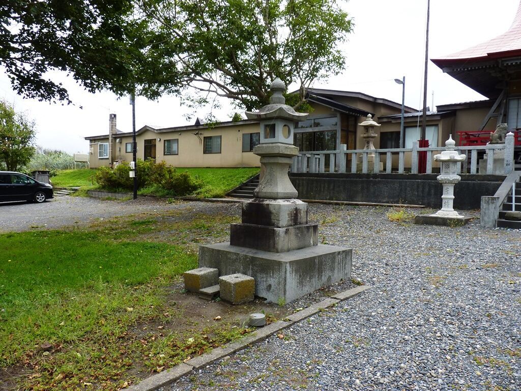 大きな傘の石灯籠一対(昭和43年8月吉日建立、献燈北海道百年記念)
