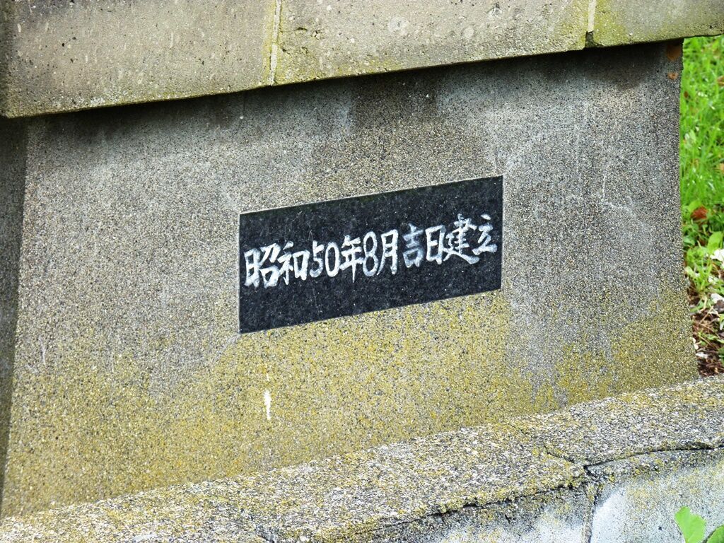 忠魂碑は明治42年8月建立、台座の忠魂碑由来は平成26年10月吉日 苫前町遺族会設置